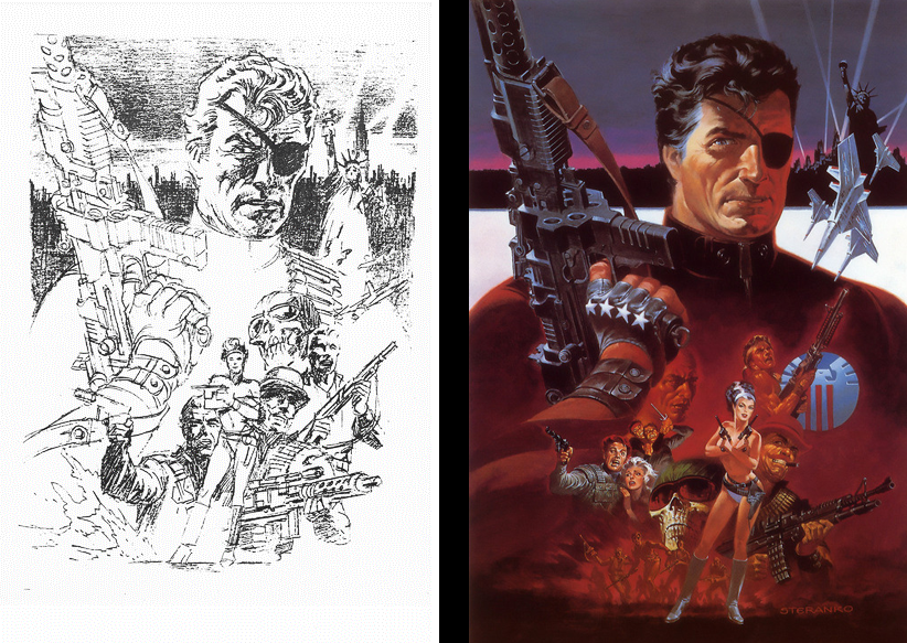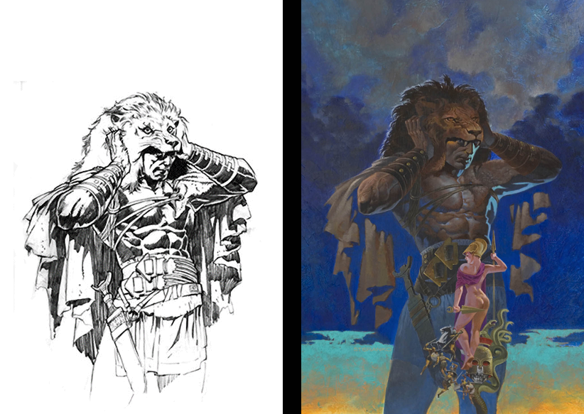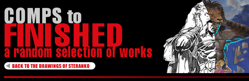 The selected images here give a rare window into the thought process of a comic artist legend. From the basic thumbnail sketches to the final image before the finished product is completed are called Comps. You can compare the various selections here and see how Jim would flesh out the details (resolving any design concerns) before the finished piece is started.